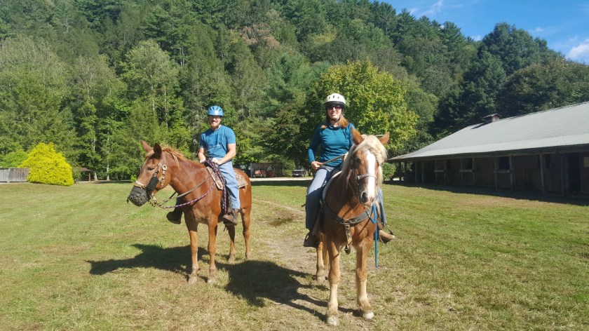 The past 4 weeks of new things have all been planned by me, but this past weekend Gabe surprised me with a trip to Leatherwood Mountains. This beautiful resort/equine center is located in Ferguson, NC with gorgeous views of the Blue Ridge Mountains. When we arrived he told me that he had booked us a 2-hour trail ride on the horses! How fun!