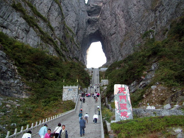 Tianmen Mountain in China is famous for its water-eroded cave, which literally formed a “hole” in the mountain! It also has an amazing pathway – an impressive flight of 999 stairs leading up to it. It take more than a half hour just to walk up it.