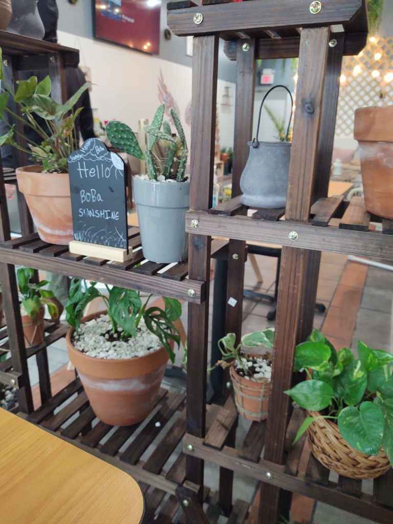 This latest addition to the scene opened in December of 2020 and is located at 1622 Stanley Rd across from Kabuto Steakhouse. They seem to be working out some training kinks as the wait times were a little long for the boba, but the flavor was good. So far I’ve tried the avocado smoothie and the black tea with cheese foam topping. I found their sweetness level to be lower than other places I’ve tried, but that could be good or bad depending on your preference. They have a cute interior with a cactus theme and hand sanitizer on each table.