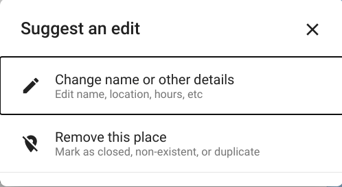 If you have never suggested an edit on Google Maps, it’s not hard and takes less than a minute. Just navigate to the page of the business, click on “suggest an edit”, then enter in the information you want to change. You can suggest an edit for the address, phone number, hours of operation, website, and business category. You can also mark it as temporarily or permanently closed.