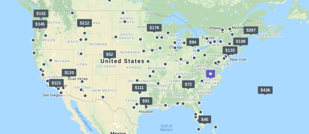 I like to use Kayak Explore when I need some travel ideas. I just plug in my departure airport and a date range (can be several months), and it will bring up a map showing the cheapest flights everywhere! Below is what I found for May departures from Raleigh, NC within the continental US.